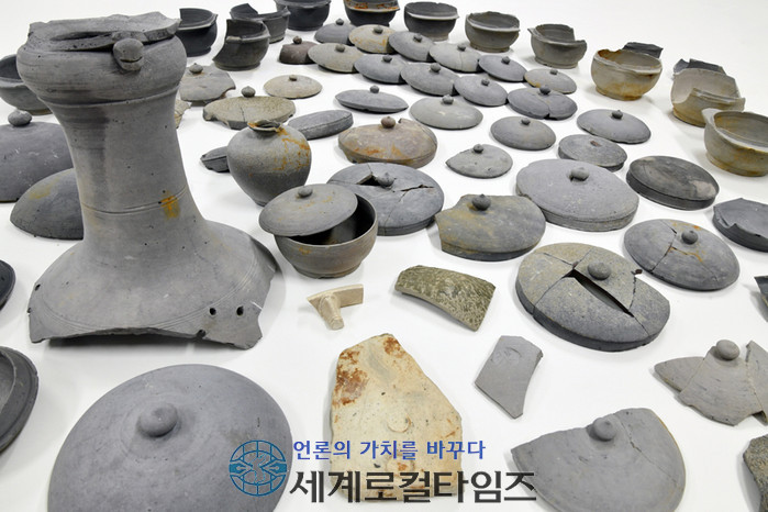 출토된 백제 시대 토기는 완형에 가까운 기대(器臺, 바닥이 둥근 항아리와 같은 기물을 받치기 위해 제작된 그릇받침), 보주형(寶珠形)뚜껑, 전달린토기(토기의 위쪽 가장자리가 조금 넓적하게 돌출돼 있는 토기)의 비중이 높았다. 또한, 7세기 신라 병형토기도 출토됐다.