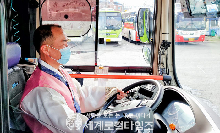 [세계로컬타임즈 조주연 기자] 전북 전주지역 시내버스 운전사들이 이번 설에 한복을 차려입고 운행한다.