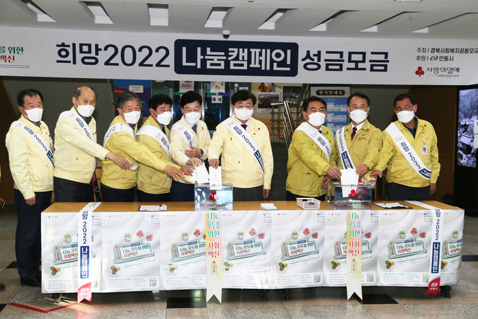 [세계로컬타임즈 이장학 기자] 안동시는 16일 희망 2022 나눔 캠페인에서 7억 7천여만 원을 모금해 사랑의 온도 117℃를 달성했다고 밝혔다.