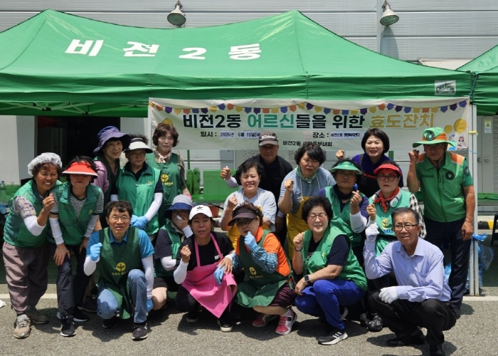 이번 효도 잔치는 비전2동 관내 어르신들께 감사와 존경의 마음을 전하고, 이웃 간 따뜻한 정을 나누기 위해 부녀회 회원들이 정성껏 준비했으며, 소머리국밥, 수육, 전, 나물반찬, 과일, 떡 등을 준비해 따뜻한 점심식사를 대접했다.