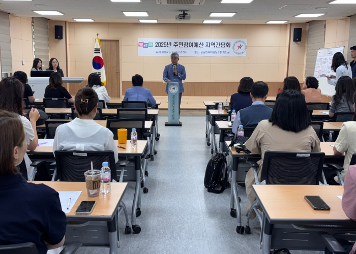 이날 간담회에서는 ▲2025년도 경기도교육청 및 성남교육지원청 예산편성 방향 설명 ▲2025년도에 반영된 주민참여예산 내역 ▲온라인을 통해 사전에 접수된 100여건의 주민 제안 의견 논의 등이 이루어졌다.