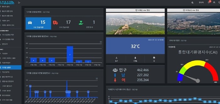 또한 사패산 정상 등 고지대에도 고화질 CCTV를 설치해 원거리 도시관제와 상황 대응 능력을 한층 높였다. 아울러 국민안전처 국가재난관리 시스템, 공공데이터, 생활안전지도 등 다양한 데이터를 수집‧연계해 도시 운영에 필요한 의사결정을 지원하고 있다.