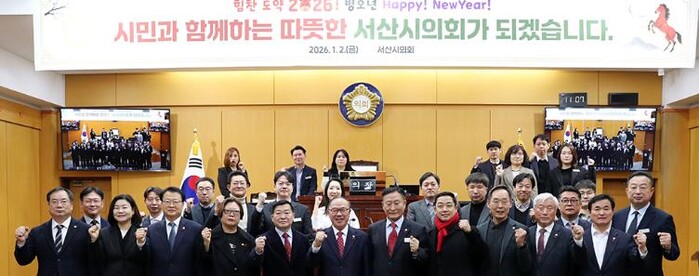 [세계로컬타임즈] 서산시의회는 2일 서산시의회 본회의장에서 ‘2026년 서산시의회 시무식’을 갖고 올해 본격적인 업무에 들어갔다.