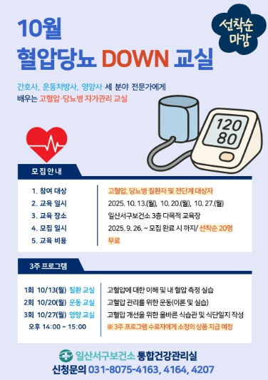 대상자 모집 기간은 26일부터 모집 완료 시까지이며, 신청 및 기타 문의는 일산서구보건소 통합건강관리실로 하면 된다.