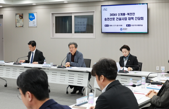 유성구는 지난 27일 오후 유성구청 대회의실에서 지역 국회의원, 구의원, 입지선정위원회 유성구 위원 및 주민 등이 참석한 가운데 ‘345kV 신계룡~북천안 송전선로 건설사업 대책 간담회’를 개최했다.