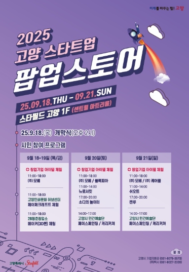 [세계로컬타임즈] 고양특례시는 오는 18일부터 21일까지 4일간 스타필드 고양에서‘2025 고양 스타트업 팝업스토어’를 개최한다고 밝혔다.