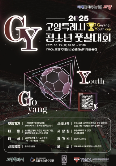 참가 대상은 대한민국축구협회에 등록되지 않은 고양시 중·고등학생이며팀당 7~9명으로 구성하면 된다. 총 24개 팀(중학생 12팀, 고등학생 12팀)을 모집하며 9월 30일까지 온라인 구글폼을 통해 선착순 접수한다. 대회 참가비는 팀당 15,000원이다.