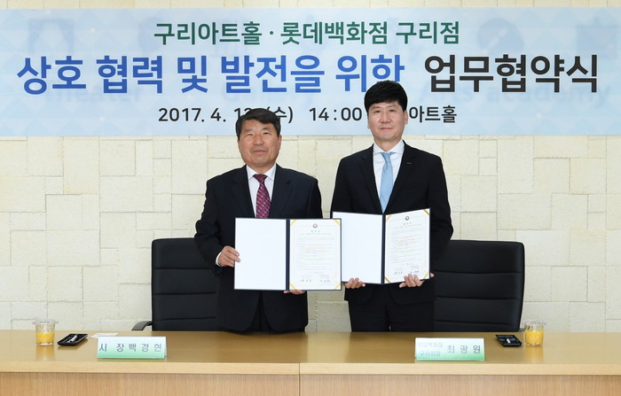 이번 업무협약식에는 백경현 구리시장과 최광원 롯데백화점 구리점장, 문철훈 구리아트홀 관장 등 관계자들이 참석했다.