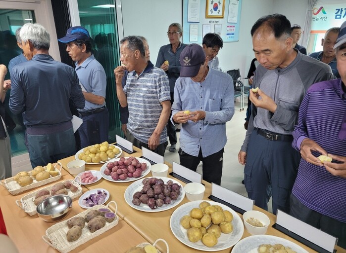 참석자들은 대황2리 마을회관에서 감자 시식 후 각 품종에 대한 식감, 외관, 크기 등을 평가했다.