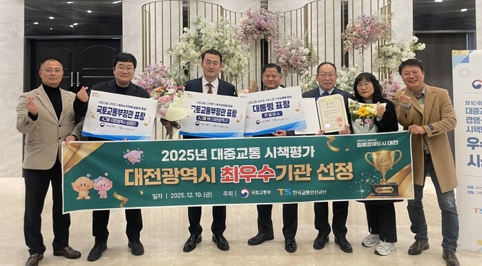 [세계로컬타임즈] 대전시는 국토교통부 주관 2025년 대중교통 시책평가에서 최우수기관으로 선정돼 19일 장관 표창을 수상했다.