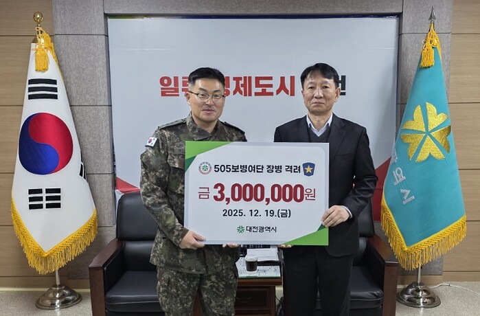 대전시, 제1970부대에 위문금 전달[세계로컬타임즈] 대전시는 19일 오전, 제1970부대에 ‘25년 비상대비훈련을 성공적으로 마친 국군 장병의 노고를 격려하고 국가안보 헌신에 감사의 뜻을 담아 위문금을 전달했다.
