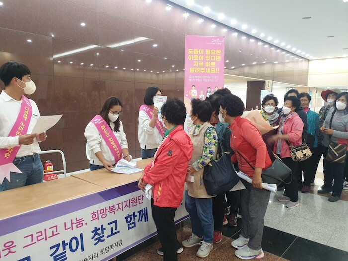 이날 캠페인에서 주변의 어려운 이웃이나 위기가정에 관심을 두고 행정복지센터와 연계할 수 있는 지역사회구조를 만들기 위해 참여 주민들에게 복지 사각지대 발굴과 관련한 홍보 전단지와 홍보 물품을 배부했다.