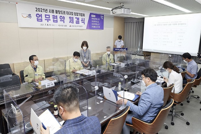 | ▲시흥 플랑드르 대규모 입점기업체와 업무협약 체결식 모습.(사진=시흥시 제공) |