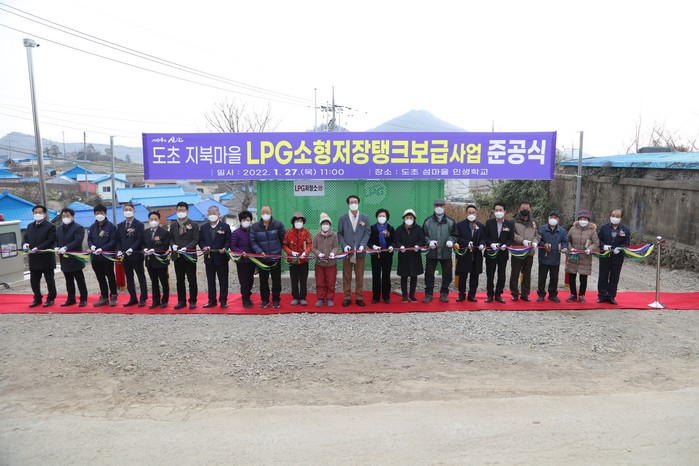 [세계로컬타임즈 조문배 기자] 신안군은 27일 도초면 지북마을 LPG 소형저장탱크 보급사업 준공식을 가졌다.
