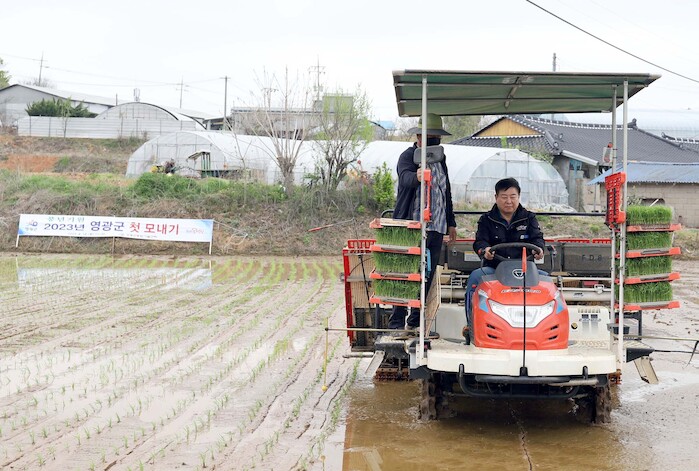 현장을 방문한 강종만 영광군수는 "올해도 풍년농사가 이뤄져서 농가소득이 오르길 기원한다"고 말했다.