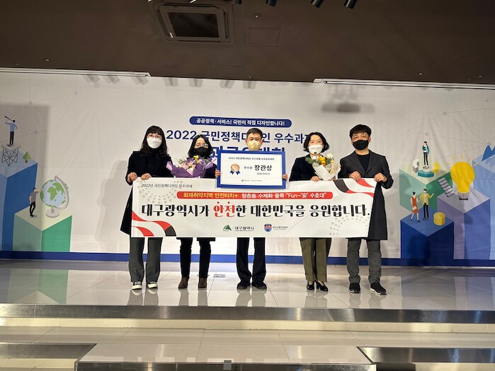 [세계로컬타임즈 이장학 기자] 대구시는 지난 28일 행정안전부가 대전KW컨벤션센터에서 개최한 ‘2022년 국민정책디자인 우수과제 성과공유대회’에서 행정안전부 장관상을 수상했다.
