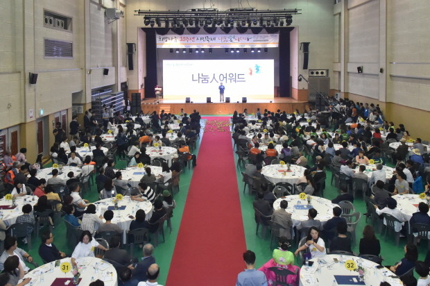 | ▲ 호평체육문화센터에서 열린 나눔인 어워드 행사에 후원자와 자원봉사 등 시민들이 참석해 수상자들을 축하하고 있다.<사진제공=남양주시청> |