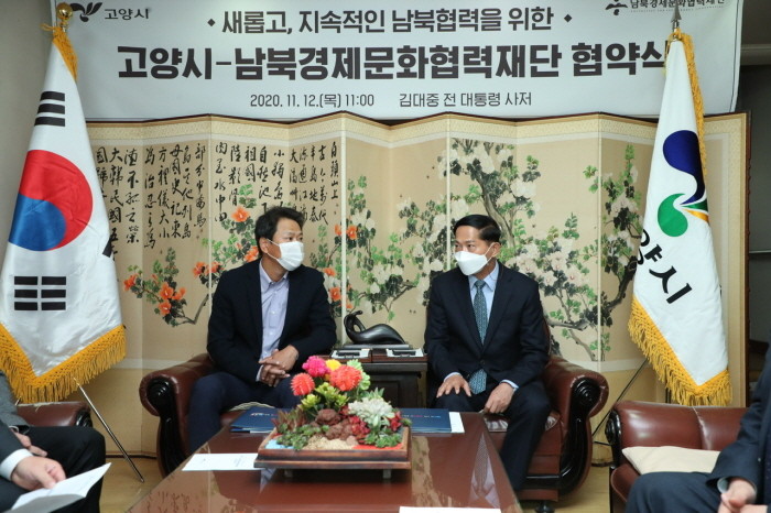12일 고양시는 이날 오전 경문협과 ‘남북 도시 간 교류협력 추진을 위한 업무협약’을 체결했다. 이번 협약식은 평화와 민주화의 상징인 고 김대중 전 대통령의 사저에서 진행돼 그 의미를 더했다.