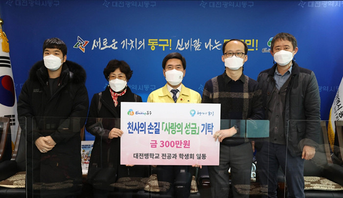 [세계로컬타임즈 민순혜 기자] 대전맹학교(교장 박준상) 이료 전문 전공과 학생회는 지난달 31일 ‘연말연시 이웃돕기 1일 안마 사랑방’ 행사를 실시해 모금한 성금 300만원을 동구청 천사의 손길 이웃돕기 성금으로 기탁했다.