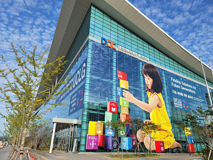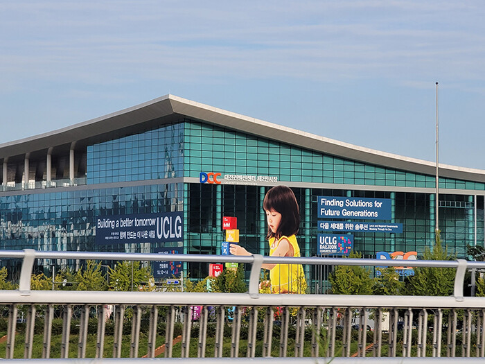 [세계로컬타임즈 민순혜 기자] 2022 대전 세계지방정부연합(UCLG) 총회 조직위원회가 총회 개회 한 달을 앞두고 여러 홍보활동에 박차를 가하고 있다. 그중 대전컨벤션센터 제2전시장 외벽에 부착된 대형 이미지는 단연 눈에 띈다.