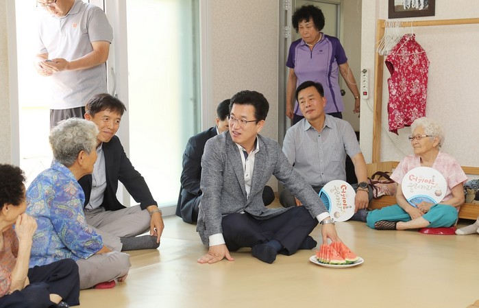 [세계로컬신문 오영균 기자] 허태정 대전시장이 24일 전국적인 폭염경보가 발령된 가운데 어르신이 여가활동하는 대덕구 신탄진 경로당 무더위쉼터를 찾아 어르신들의 안부를 물으며 냉방기 가동 현황을 확인했다.