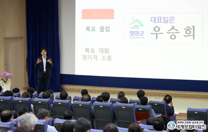 이어 혁신영암의 미래비전인 ▲주민의 입장에서 생각하는 행정의 혁신 ▲지역의 자부심을 느끼는 지역의 혁신에 관해 다양한 사례를 통해 설명했다.
