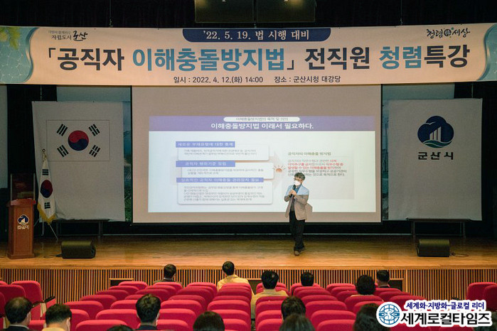 [세계로컬타임즈 조주연 기자] 전북 군산시가 전 직원을 대상으로 ‘공직자의 이해충돌방지법’교육을 실시했다.