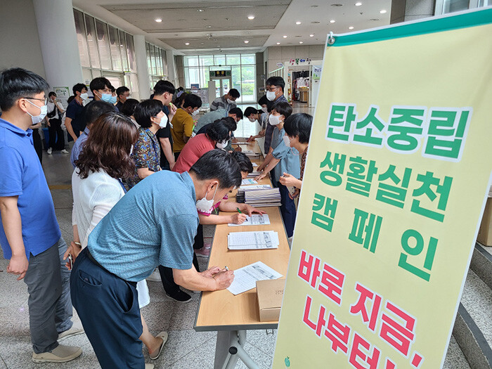 이번 캠페인은 ‘대중교통 이용하기, 분리배출 철저히 하기 등’의 일상생활 속의 저탄소 생활실천을 약속하는 서명을 실시해 탄소중립 실현을 위해 솔선수범할 것을 다짐하는 계기를 마련하기 위해 추진됐다.