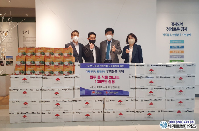 [세계로컬타임즈 조주연 기자] (유)신포우리식품이 전북 김제시 다자녀가정 행복드림 매칭 후원 사업에 참여해 후원물품을 기탁했다.