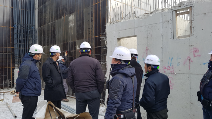 | ▲ 지난 5일 수원시 관계자들이 관내 건축물 공사 현장을 둘러보며 안전점검을 하고 있다. |