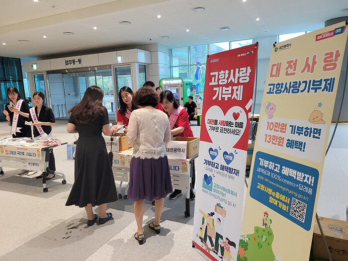 [세계로컬타임즈 민순혜 기자] 대전시는 추석 명절을 맞아 20일 정부 세종청사 중앙동 1층 로비에서 찾아가는 고향사랑기부 홍보 캠페인을 전개했다.