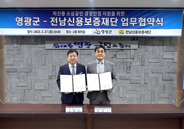 [세계로컬타임즈 이남규 기자] 전남 영광군과 전남신용보증재단이 저신용 소상공인 특례보증 지원을 위한 업무협약을 체결했다.