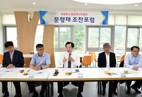 [세계로컬신문 온라인뉴스팀] 경기 의정부시(시장 안병용)는 '유엔사무국 의정부시 유치'를 주제로 제34차 행정혁신위원회 문향재 조찬포럼을 22일 시청 문향재에서 개최했다.