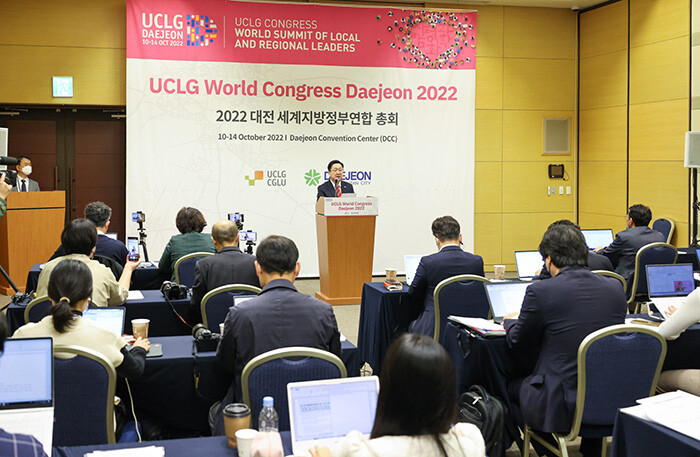 [세계로컬타임즈 민순혜 기자] 이장우 대전시장은 2022 대전 세계지방정부연합(UCLG) 총회 폐막일인 14일 기자 브리핑을 갖고, UCLG 총회 사상 최대규모인 145개국 576개 도시 6,200여 명이 참여한 가운데 성공적으로 진행되며 대전시의 국제적 위상을 높이는 성과를 거뒀다고 밝혔다.