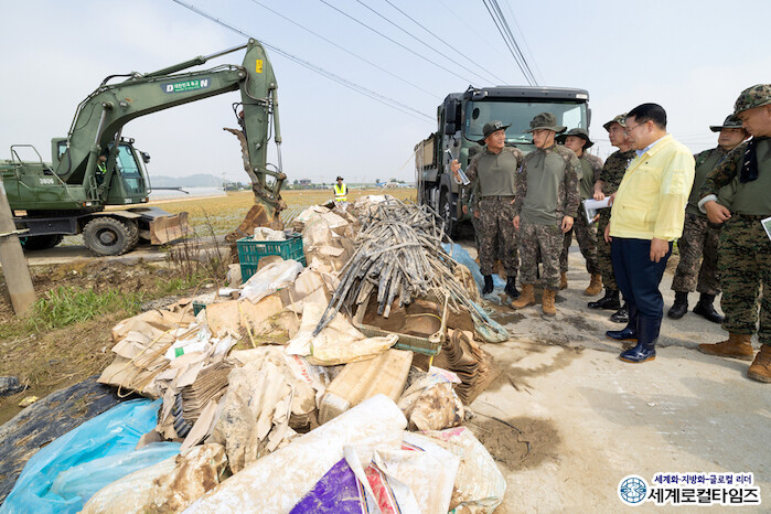 [세계로컬타임즈 조주연 기자] 육군이 특별재난지역으로 선포된 전북 익산시에 대규모 인력을 투입해 긴급 수해복구를 돕고 있다.