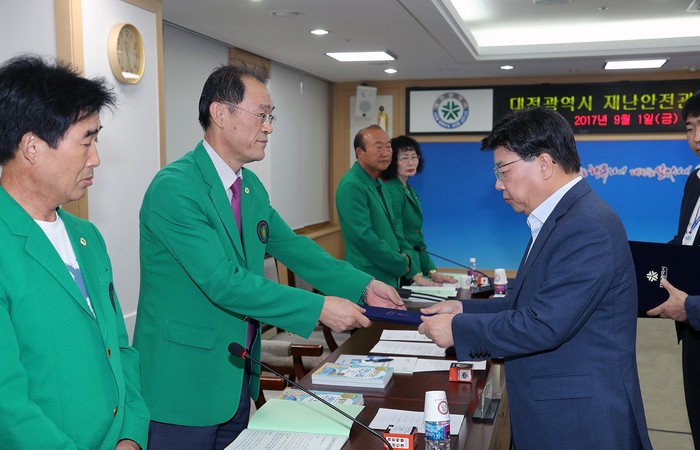권선택 시장은 인사말을 통해 사회위험이 다양화되고 일상화되어가고 있는 현실에 지역실정에 밝은 주민들로 재난안전 감시체계를 구축하게 돼 기대가 크다”며 “위험을 보는 것이 안전의 시작이듯 지역의 위험요소를 적극적으로 발굴.해소해 대전이 한층 더 안전한 도시가 되도록 다함께 노력하자”고 말했다.