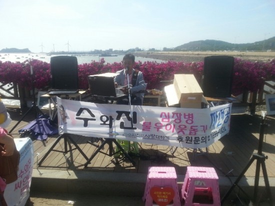 [세계로컬신문 최원만 기자] 거리의 천사 ‘수와진’이 지난 2일 화성 뱃놀이 축제장에 기타를 들고 심장병 어린이를 위한 자선모금 행사에 나섰다.