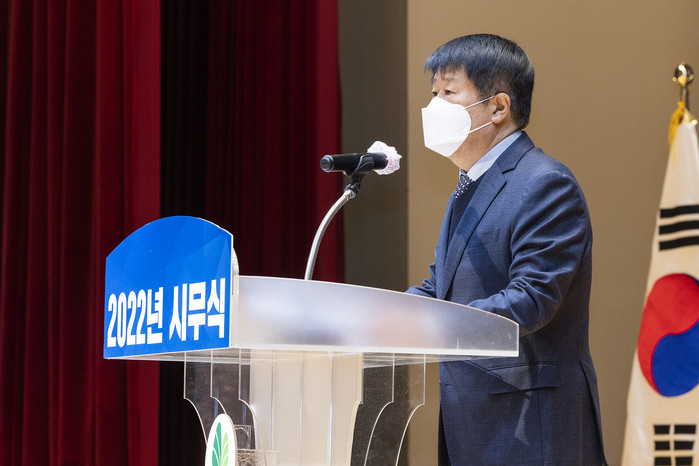 | ▲ 박형우 인천광역시 계양구청장이 새해 시무식을 진행하고 있다.(사진=인천 계양구) |