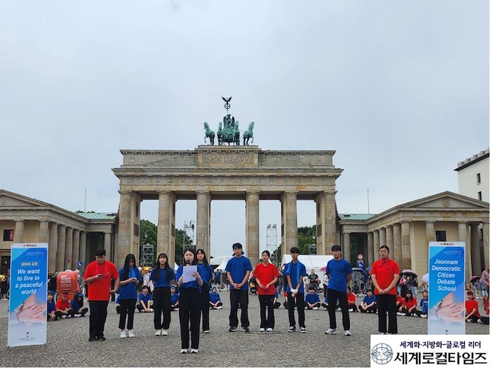 [세계로컬타임즈 김명진 기자] 전남민주시민토론학교 국외 캠프단이 베를린 현지에서 평화와 공존 메시지를 담은 ‘공공외교’ 활동에 나서 현지의 이목을 집중시켰다.