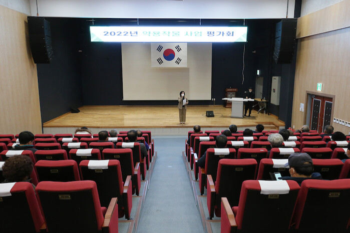 이번 평가회는 약용작물 재배 동향, 시범사업 성과, 농가 사례 발표, 약용작물 전시 및 평가 등으로 진행했다.