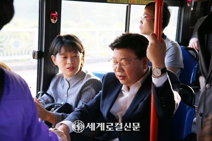 권 시장은 버스안에서 승객들과 환담을 나누며 대중교통 이용을 당부했다. 그는 “지난해부터 매월 22일은 시내버스로 출근하고 있다”며 “승용차 이용 줄이기는 대전사랑 실천의 첫 걸음이라는 관점에서 시민여러분의 공감과 적극적인 참여를 당부드린다”고 주문했다.