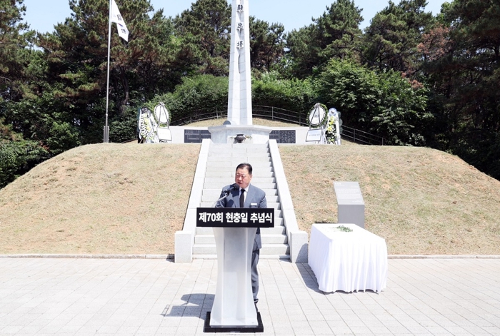 추념식은 오전 10시 전국 동시 사이렌 취명에 맞춰 호국영령에 대한 추모묵념을 시작으로, 국민의례, 헌화 및 분향, 추념사, 헌시 낭독, 현충일 노래 제창 순으로 경건히 진행됐다.