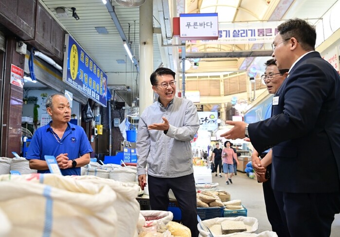 세계로컬타임즈 - 경기도 김대순 행정2부지사, ‘통큰세일’ 진행 중인 고양 원당시장 방문, 소상공인 격려