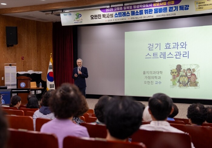 이번 특강은 충북인재평생교육진흥원이 주관한 ‘2025년 고령층 충북형 평생학습도시 공모사업'에 선정돼 추진하는 ‘증평형 ESG: E(친환경)·S(스포츠)·G(힐링문화) 그린라이프 선배학교' 의 건강한 생활을 위한 스포츠 활동지원의 일환으로 마련됐다.
