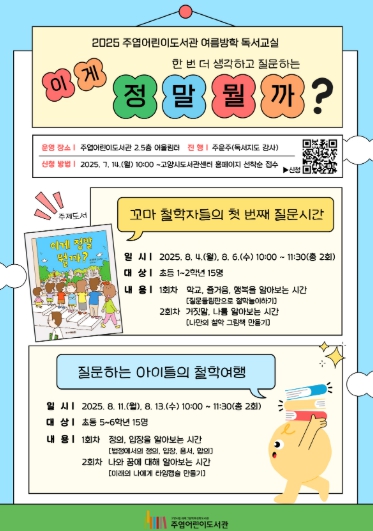 주엽어린이도서관 관계자는 “이번 여름방학 독서교실은 책을 읽는 데 그치지 않고, 책을 매개로 생각하고 쓰며 스스로 질문하는 힘을 키울 수 있도록 기획됐다. 아이들이 즐겁게 참여하고 방학 기간에 의미 있는 독서 경험을 쌓길 바란다”고 전했다.