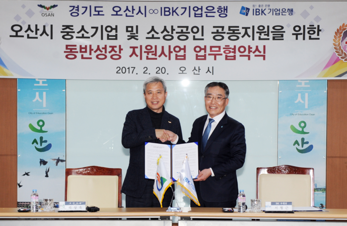 [세계로컬신문 최원만 기자] 경기도 오산시는 20일 시청 물향기실에서 오산시와 IBK 기업은행간 중소기업 및 소상공인 동반성장 지원 확대를 위한 '2017년 동반성장 지원사업 협약식'을 체결했다.