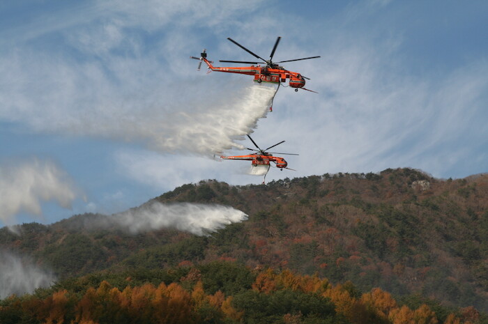 이번 취항하는 산림청 초대형 헬기는 미국 ERICSON Air-Crane사가 제작한 S-64E형으로 담수량은 8000리터이며, 1회 진화면적은 2400㎡(720여평)으로 산림청에서는 7대를 보유하고 있다.