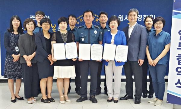 [세계로컬신문 최원만 기자] 경기도 수원시 권선구·팔달구보건소와 수원서부경찰서는 7일 최혜옥 권선구보건소장, 이희옥 팔달구보건소장, 김형섭 서부경찰서장 등이 참석한 가운데 수원서부경찰서에서 치매노인 보호를 위한 ‘치매노인 실종제로사업 업무협약’을 체결했다.