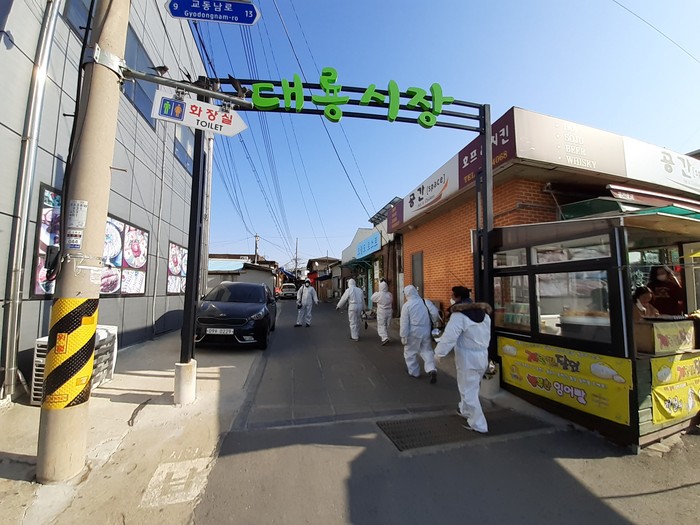 11일 교동면에 따르면 전날 협의체 위원 18명은 관광객들이 많이 방문하는 대룡시장, 공중화장실, 공공기관 등 다중이용시설에 소독약을 살포하기 닦아내는 방식으로 방역활동을 진행했다.