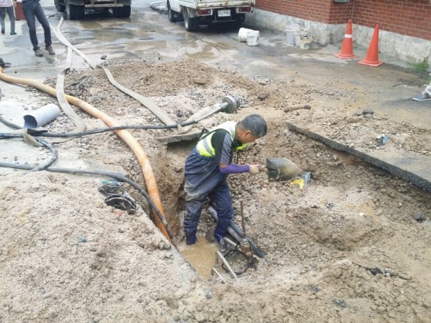 | ▲ 남양주시가 연휴기간에도 8272민원센터을 연영한 가운데 관계자가 신고를 받고 출동해 공사를 하고 있다.<사진제공=남양주시청> |